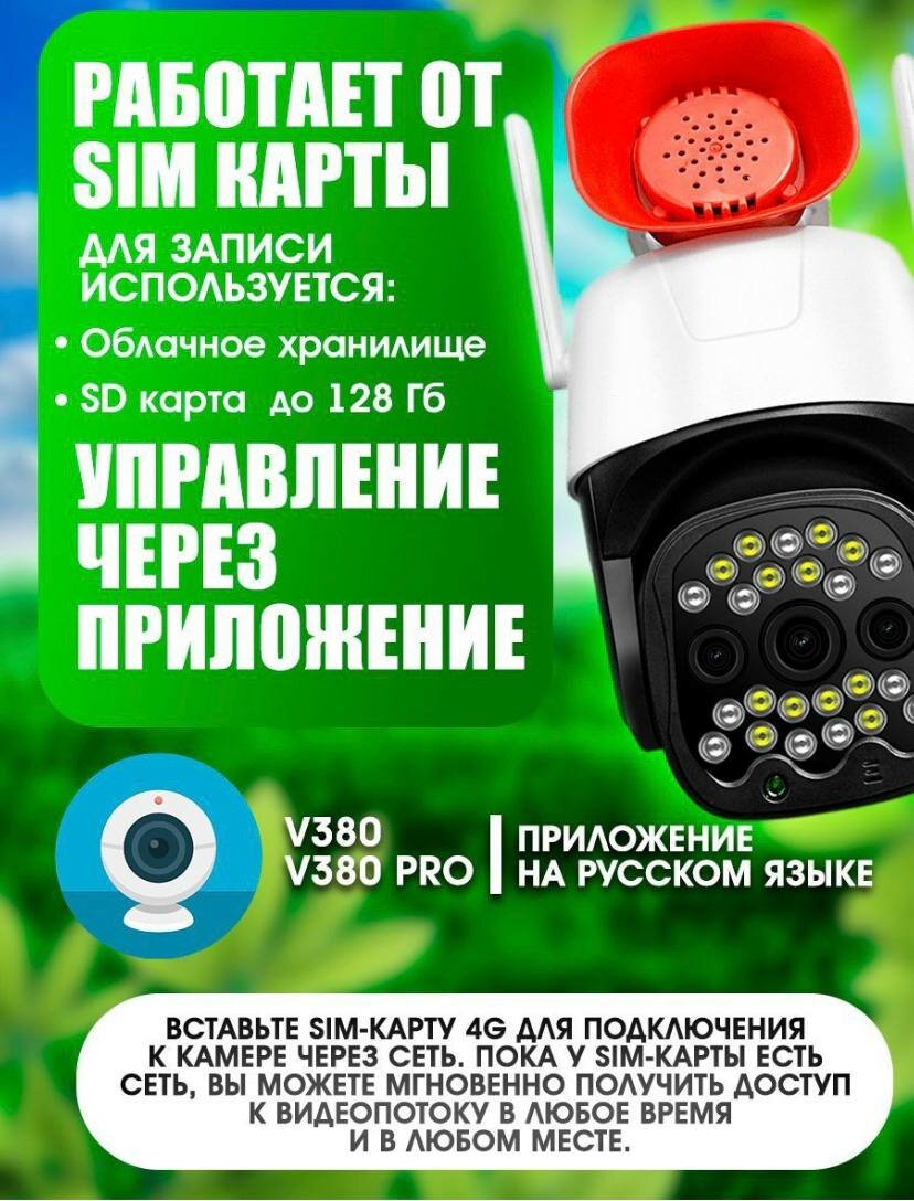 Камера видеонаблюдения , работает от сим-карты, с микрофоном, ночная съёмка, датчик движения, поворотная для дома и улицы.4G,5 МП интересное: