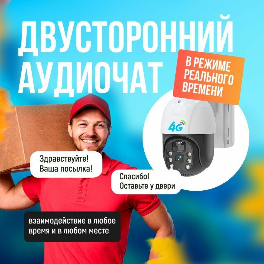 Камера видеонаблюдения 4G с 2 объективами, уличная под сим карту, 5 Мп, с датчиком движения, сигнализацией и режимом ночной съемки