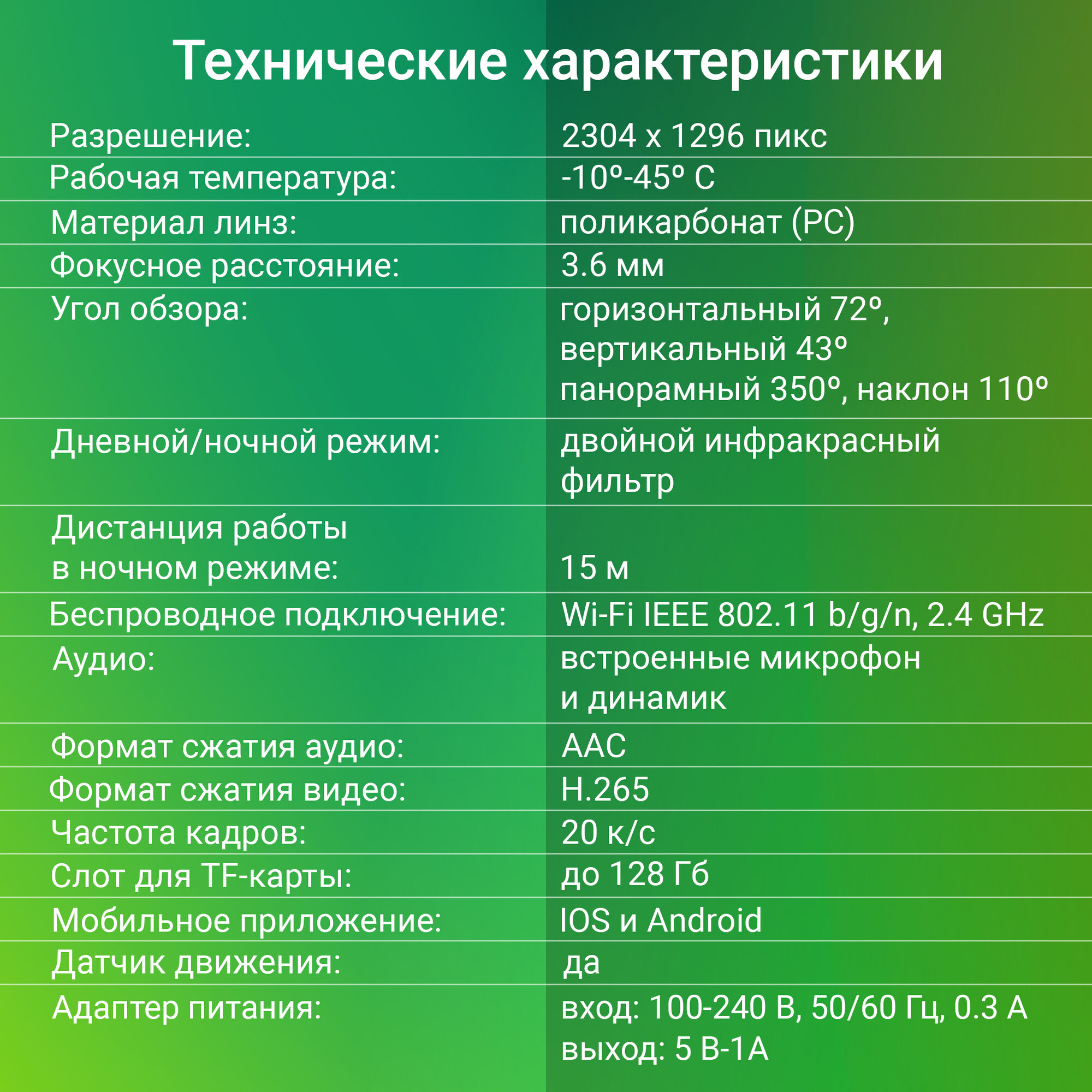 | Макс. разрешение видеокамеры | 2304х1296 |