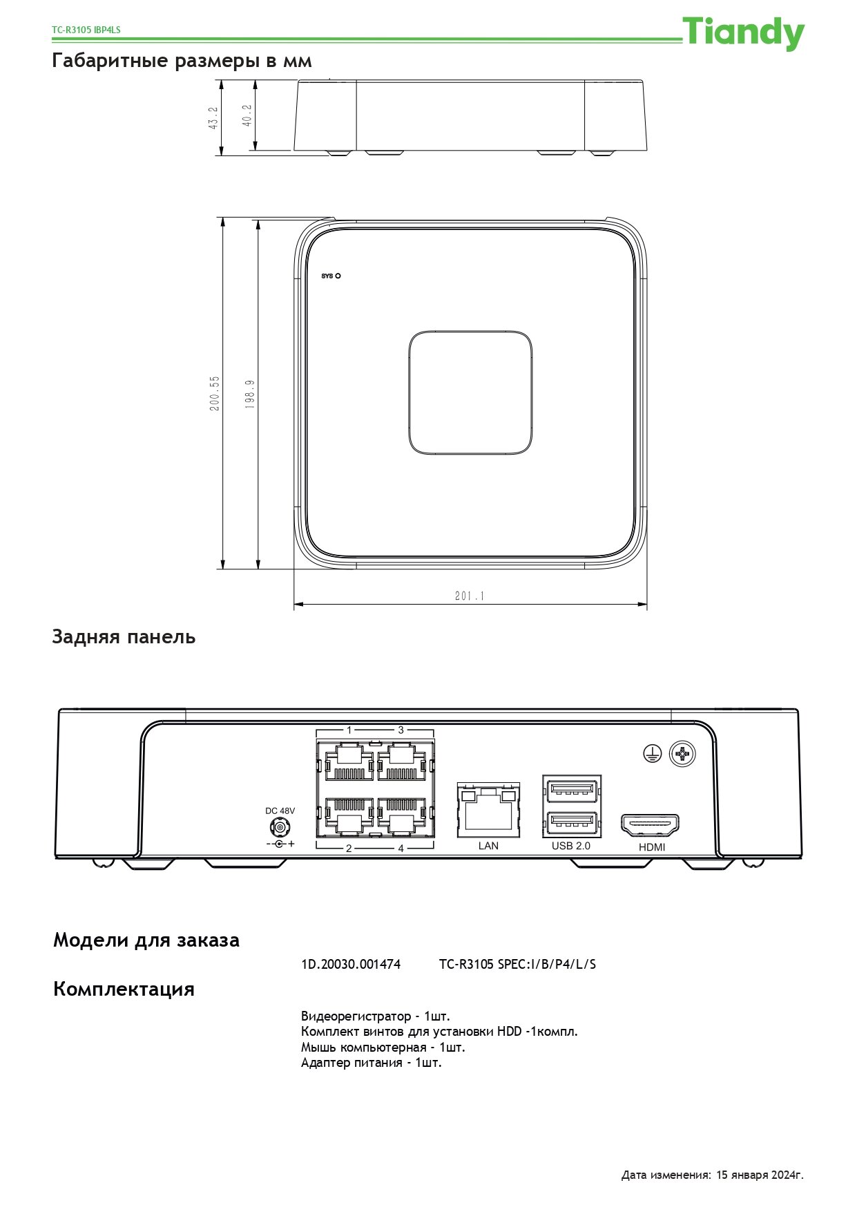 | Комплектация | Видеорегистратор - 1шт. Комплект винтов для установки HDD -1компл. Мышь компьютерная - 1шт. Адаптер питания - 1шт. |