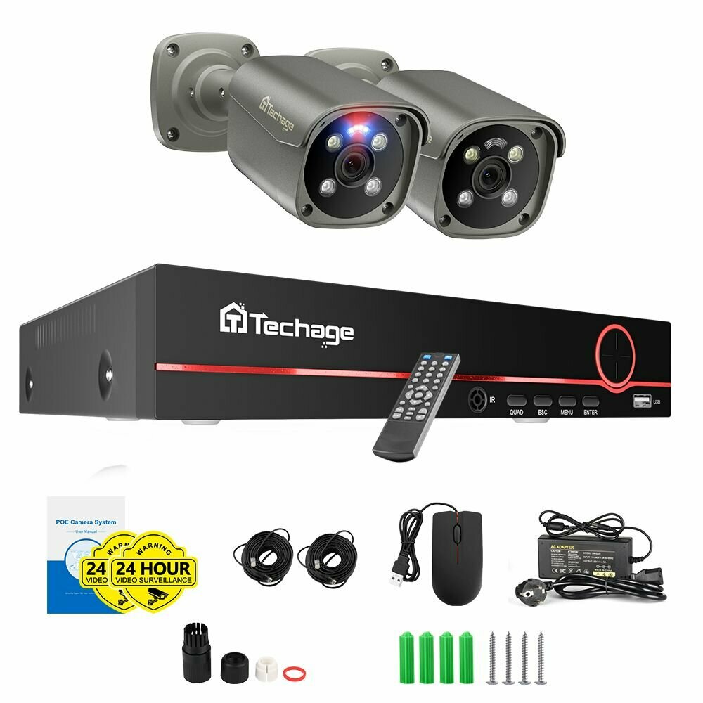 Готовые комплекты видеонаблюдения Techage, 6 камер, 4K, IP66