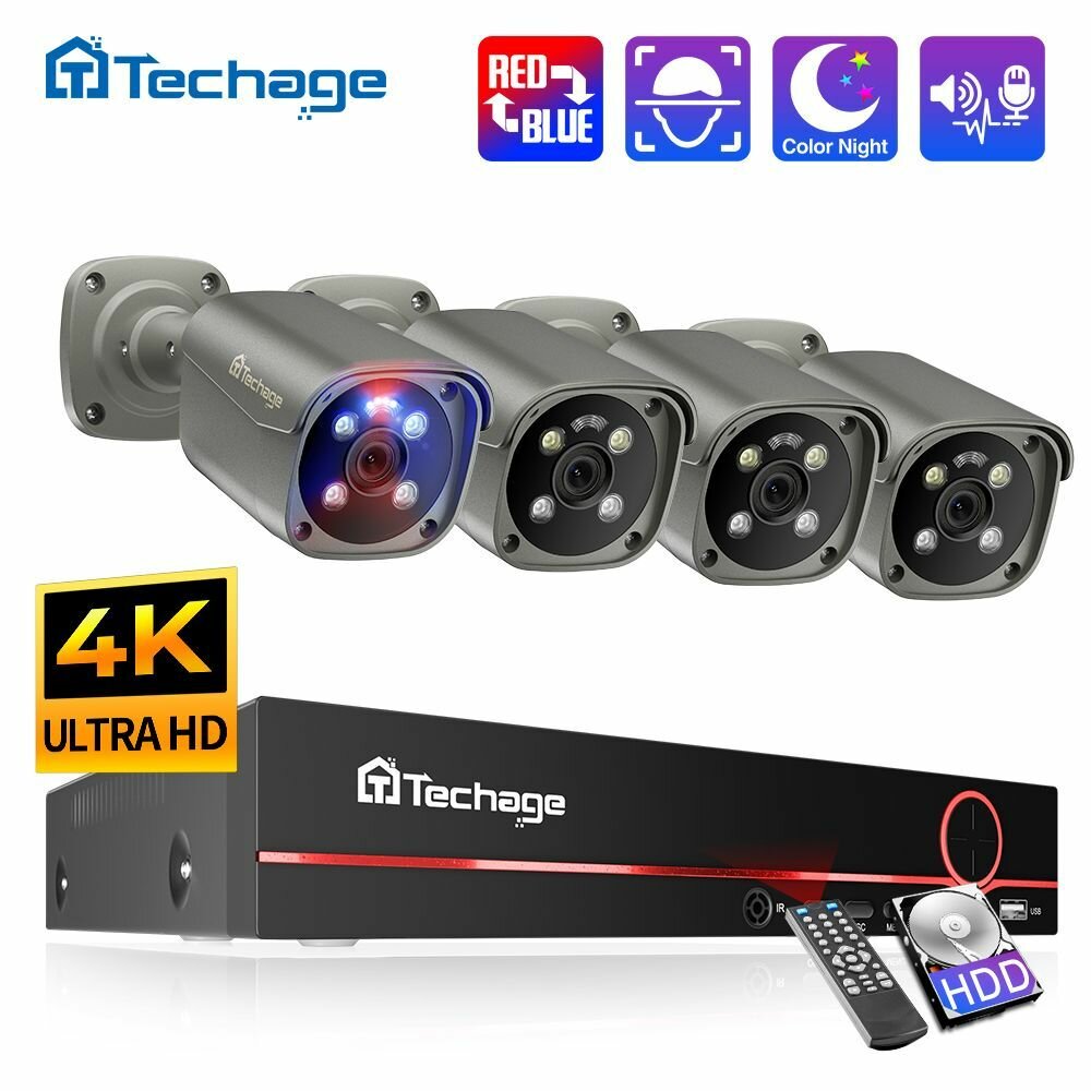 Купить Комплект видеонаблюдения уличный 8Мп Готовый комплект видеонаблюдения на 4 камеры Цифровой проводной IP POE подключи и играй