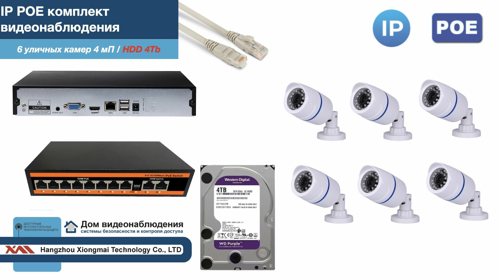 Полный IP POE комплект видеонаблюдения на 6 камер (KIT6IPPOE100W4MP-HDD4Tb) интересное: