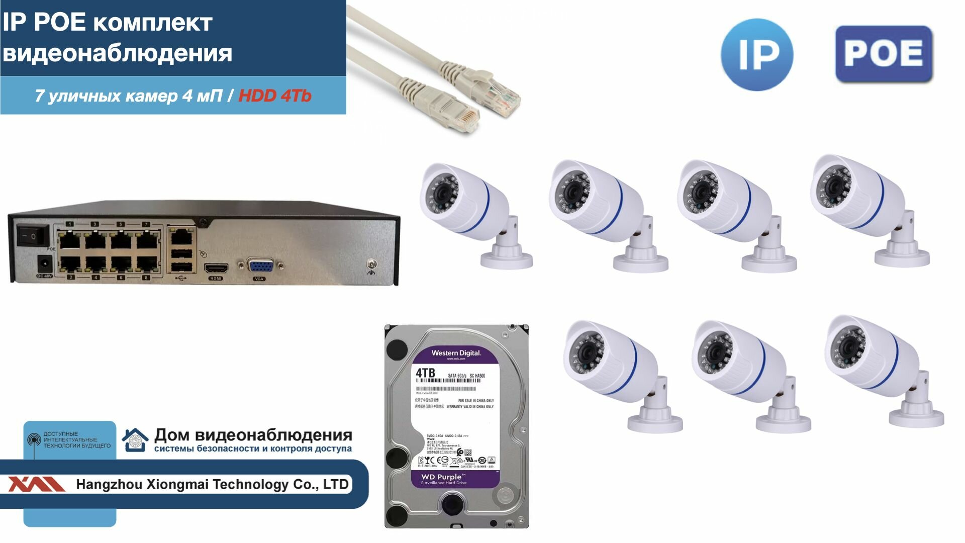 Полный IP POE комплект видеонаблюдения на 7 камер (KIT7IPPOE100W4MP-2-HDD4Tb) интересное: