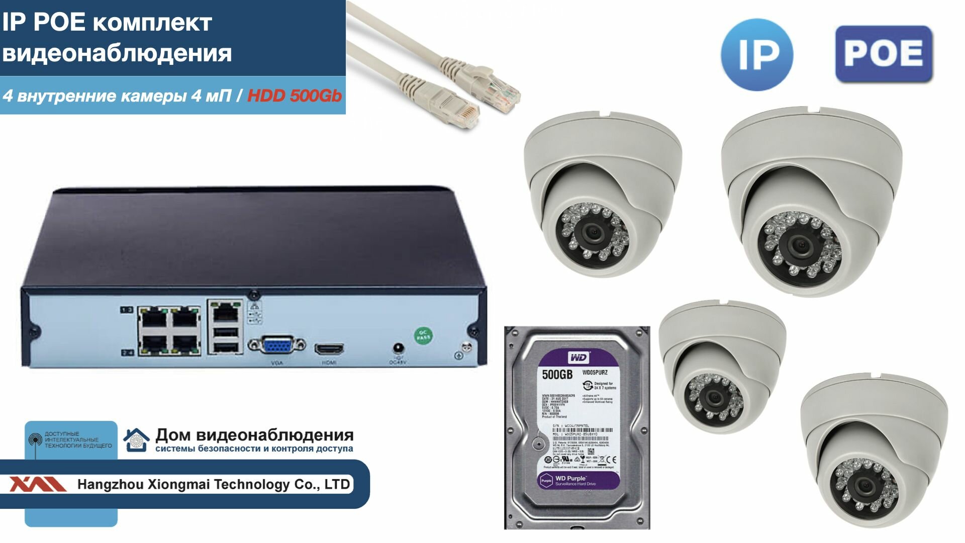 Полный IP POE комплект видеонаблюдения на 4 камеры (KIT4IPPOE300W4MP-2-HDD500Gb) интересное: