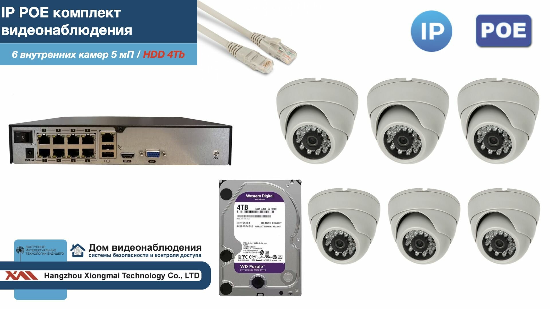 Купить Полный IP POE комплект видеонаблюдения на 6 камер (KIT6IPPOE300W5MP-2-HDD4Tb)