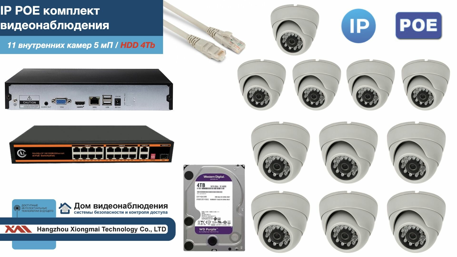 Полный IP POE комплект видеонаблюдения на 11 камер (KIT11IPPOE300W5MP-HDD4Tb) интересное: