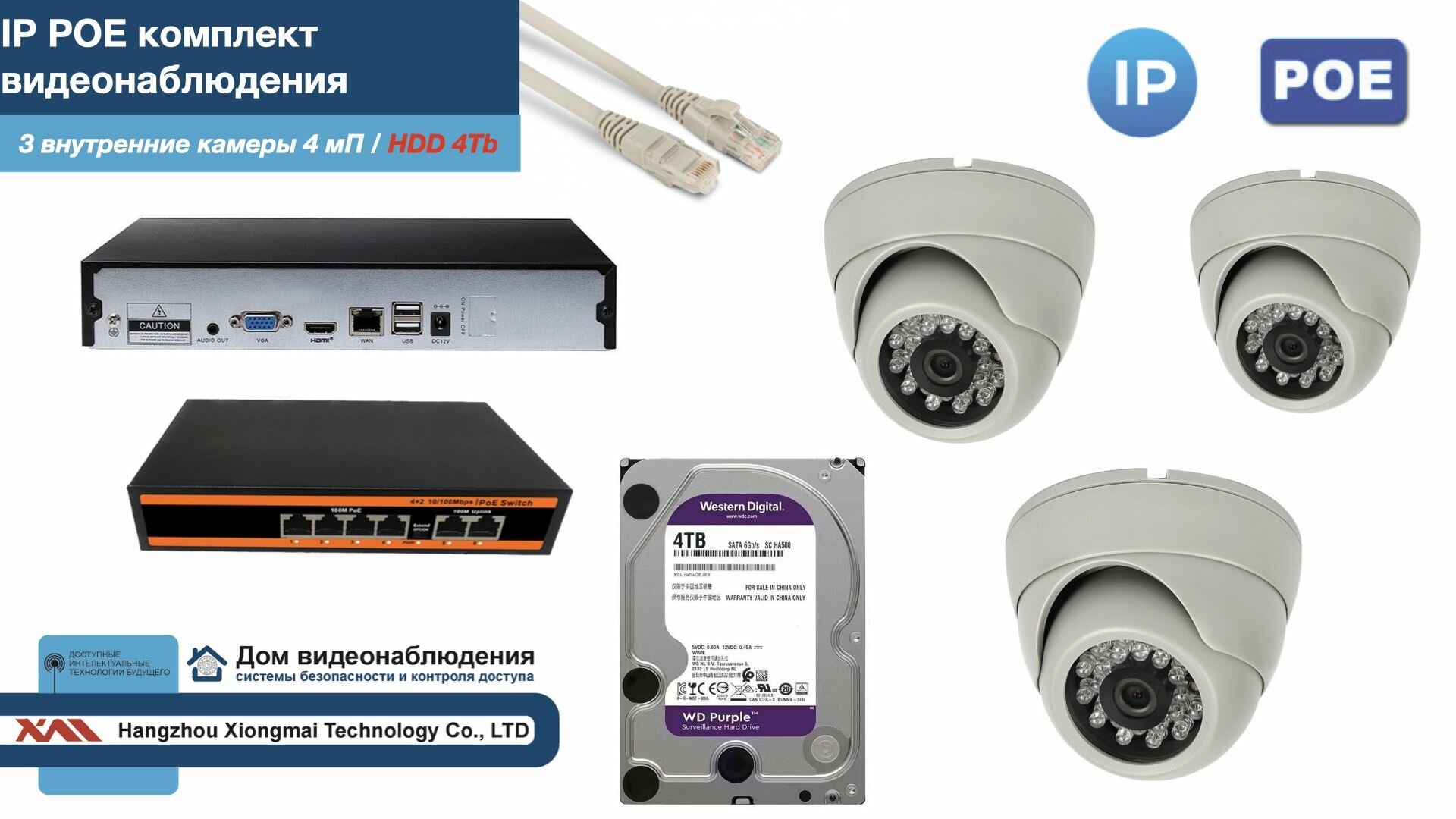 Купить Полный IP POE комплект видеонаблюдения на 3 камеры (KIT3IPPOE300W4MP-HDD4Tb)