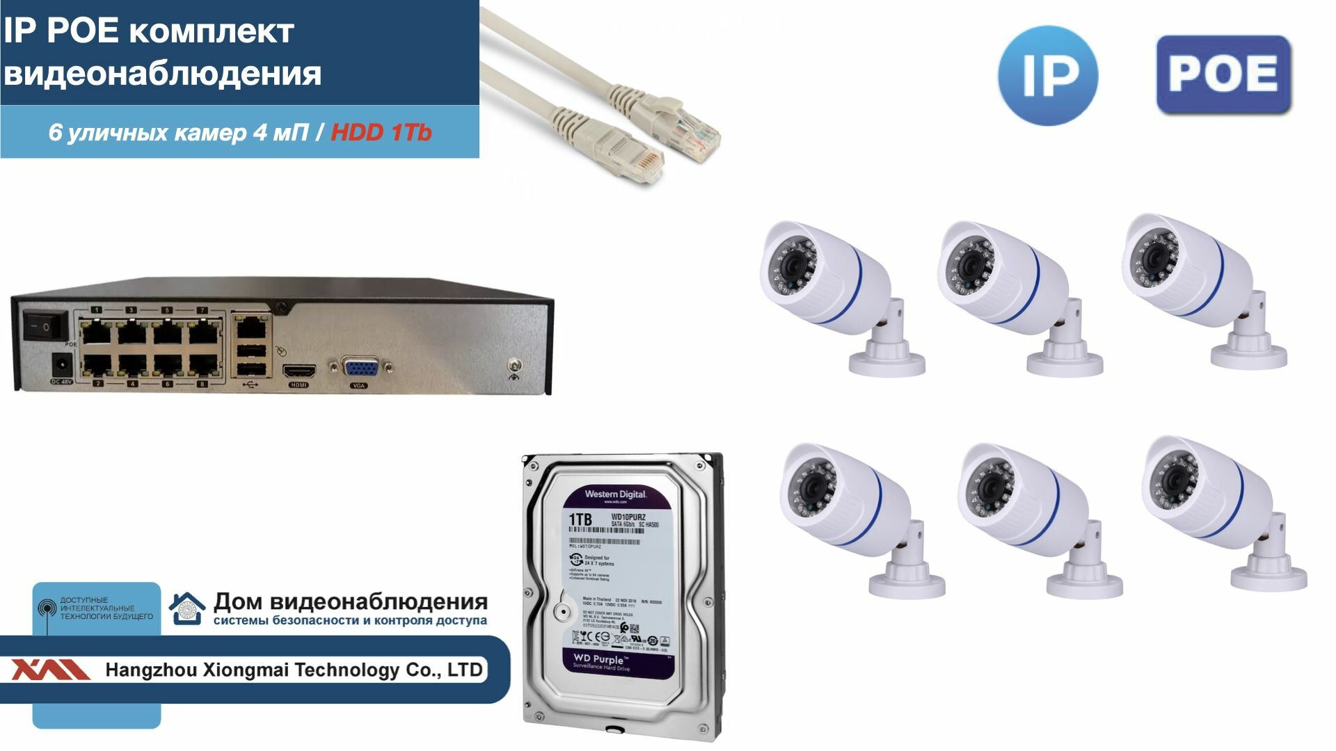 Купить Полный IP POE комплект видеонаблюдения на 6 камер (KIT6IPPOE100W4MP-2-HDD1Tb)