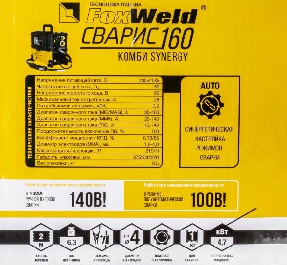 Сварочный полуавтомат инверторный Foxweld Сварис 160 Комби Synergy, 160 А, до 3 мм интересное: