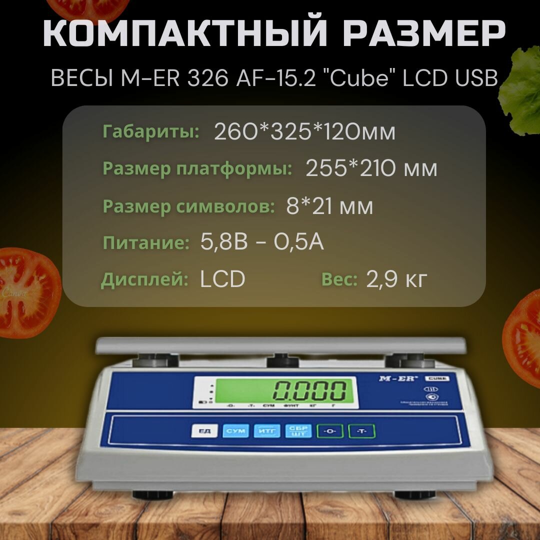 Фасовочные настольные весы M-ER 326 AF-15.2 "Cube" LCD USB