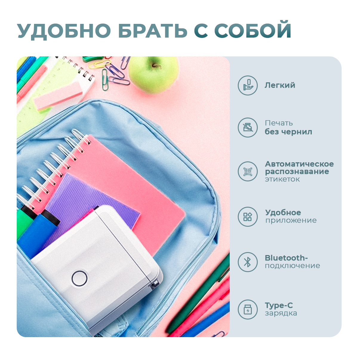 Портативный принтер стикеров NIIMBOT D110 White интересное: