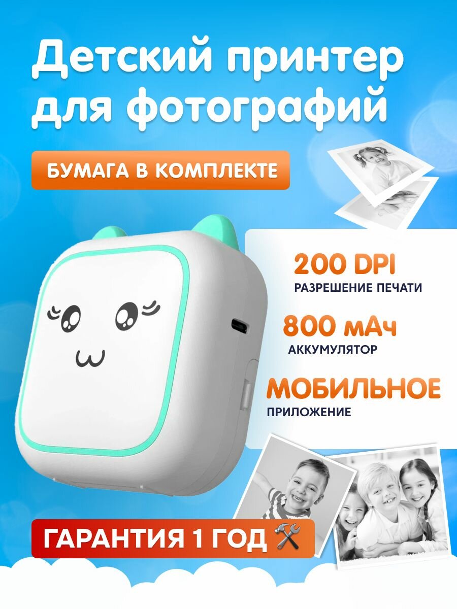 Детский мини-принтер для фотографий Kid Joy, 200DPI, Bluetooth 5.1, APP (M5) Blue интересное: