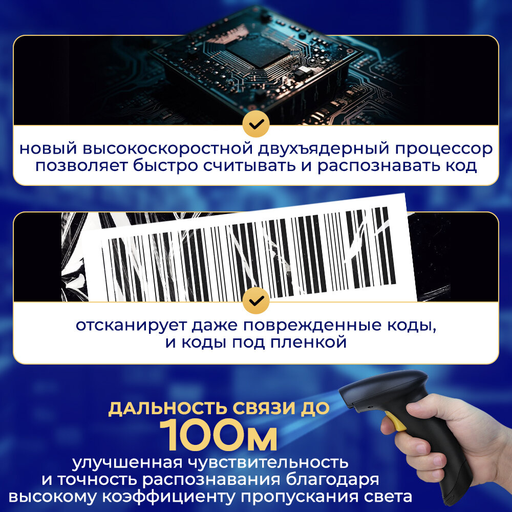 | Комплектация | Сканер ШК, кабель USB, радио адаптер 2.4G, инструкция на русском языке |