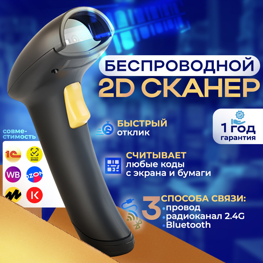 Сканер штрихкода Holyhah A36D, беспроводной, 1D и 2D, QR-Code, ЕГАИС, Честный знак