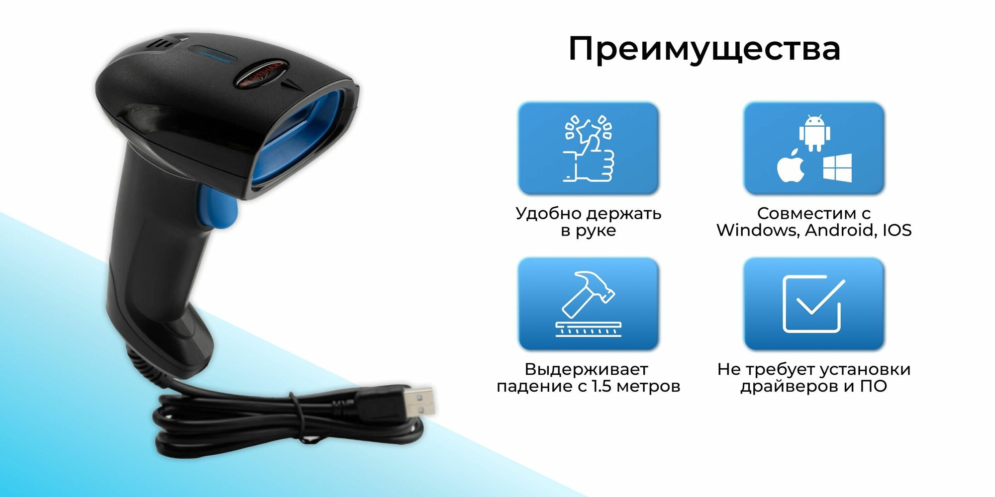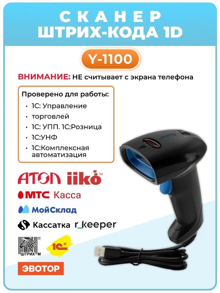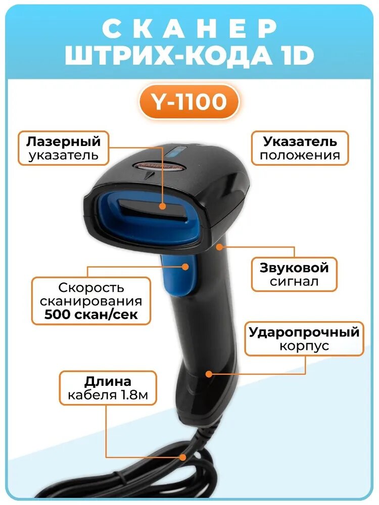 Сканер штрих кода 1D Y-11001D (провод) РЦП для обычных линейных кодов интересное: