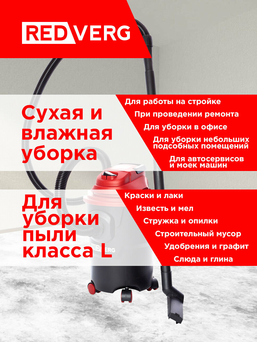 Строительный пылесос RedVerg RD-VC1200S-20P