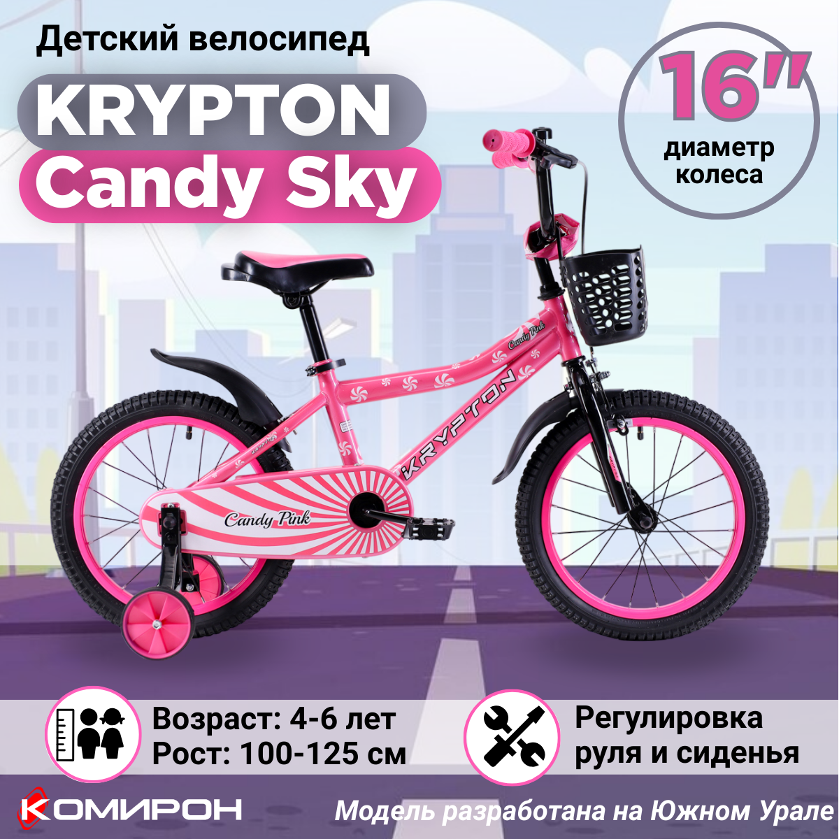 СохранитьВелосипед детский двухколесный 16" Krypton Candy Pink / на 4-6 лет, 100-125 см интересное: