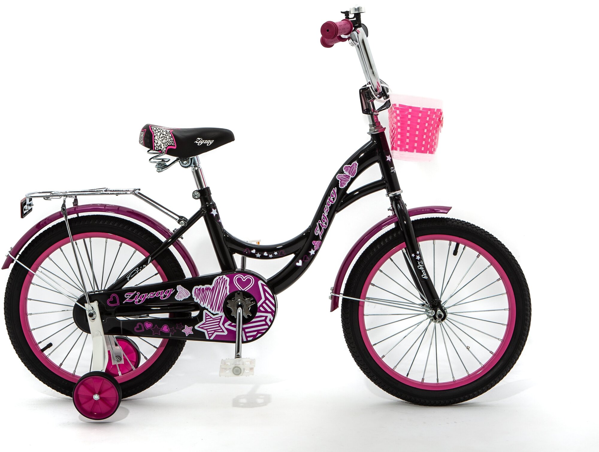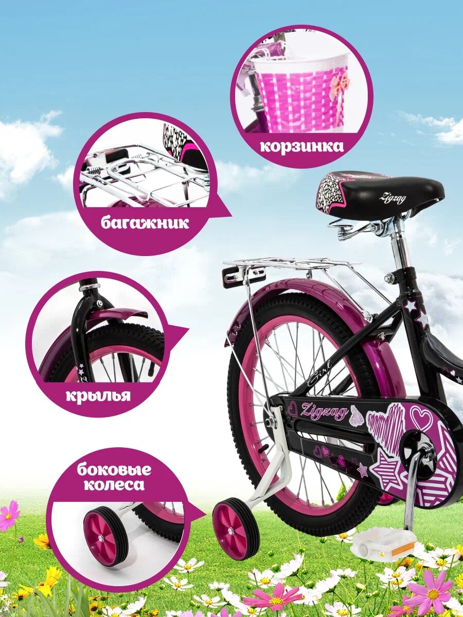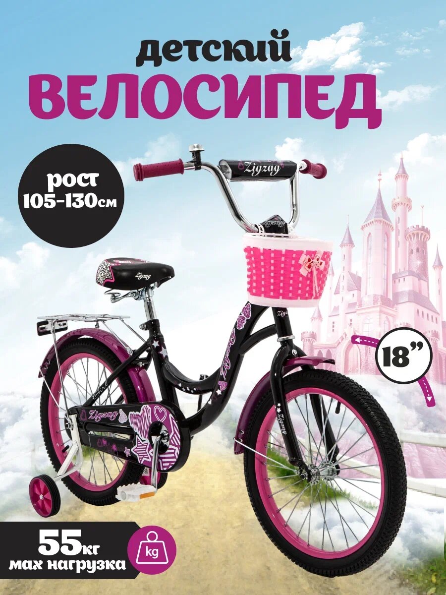 Купить Велосипед детский двухколесный 18" ZIGZAG GIRL черный/малиновый от 5 до 7 лет на рост 105-130см (требует финальной сборки)