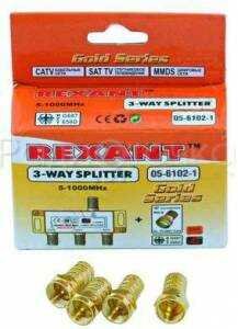 Делитель ТВ х 3 + 4шт. F "box" 5-1000 МГц "gold" Rexant 05-6102-1