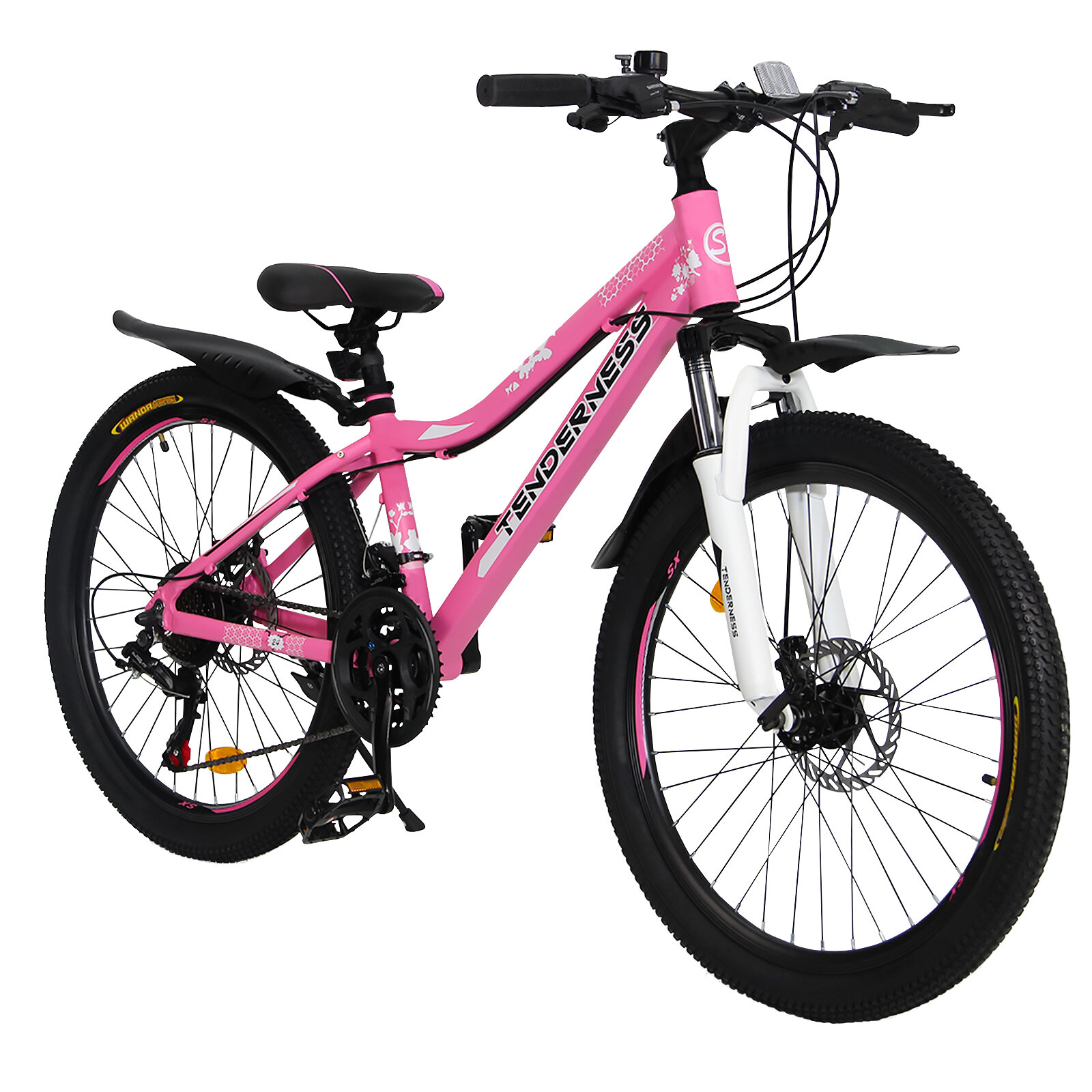 Купить Горный велосипед детский скоростной Tenderness 24" розовый, 8-14 лет, 21 скорость (Shimano tourney)