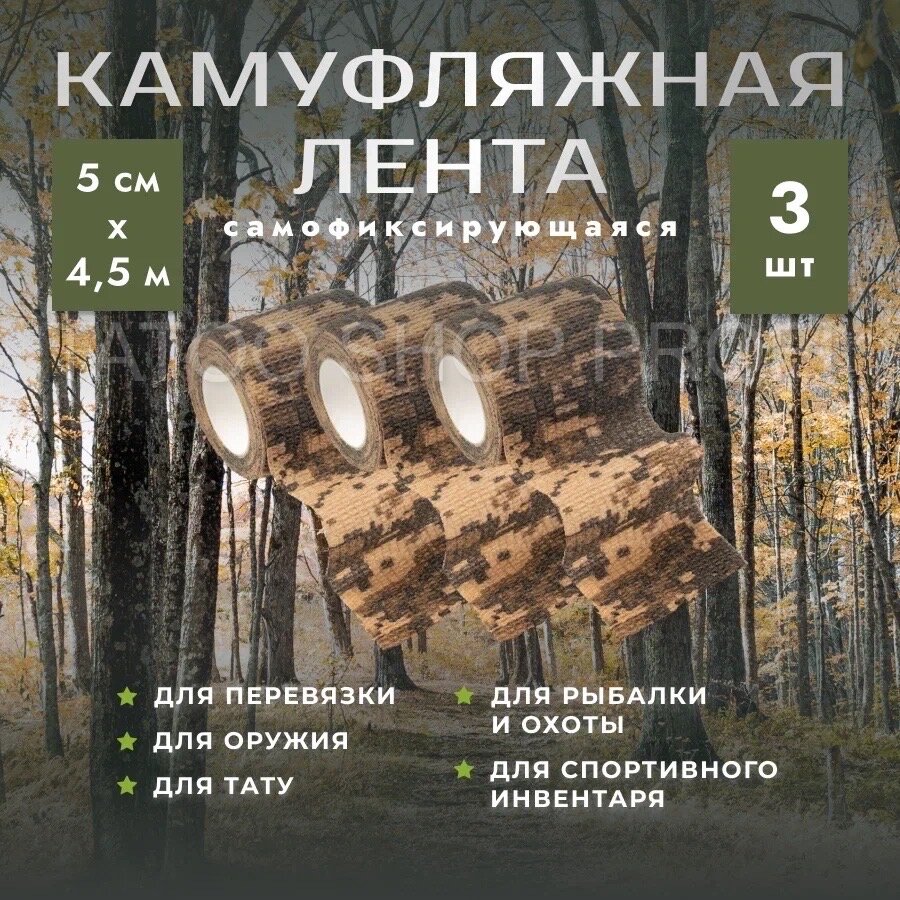 Камуфляжная лента самофиксирующаяся 3 штуки