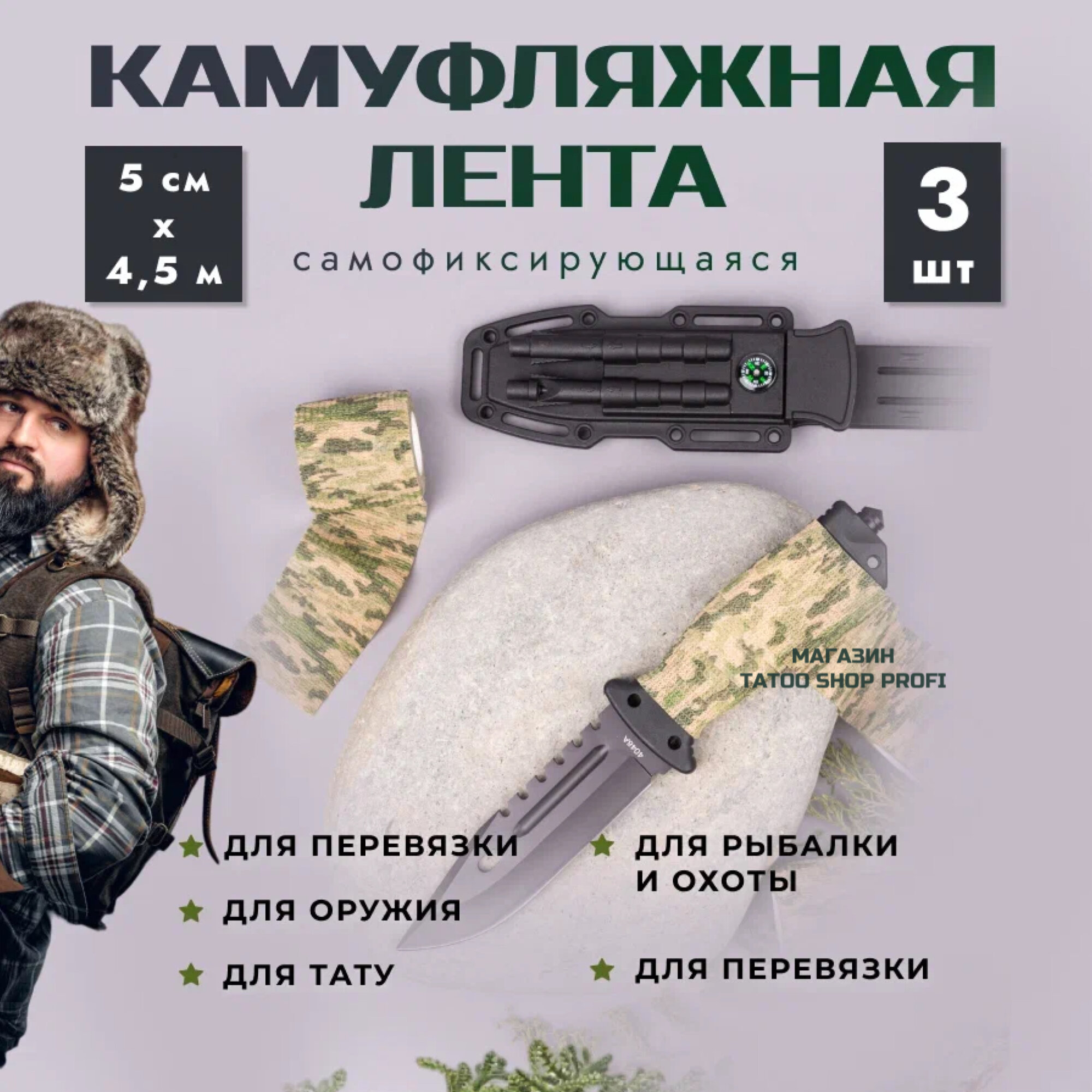 Камуфляжная лента самофиксирующаяся 3 штуки интересное: