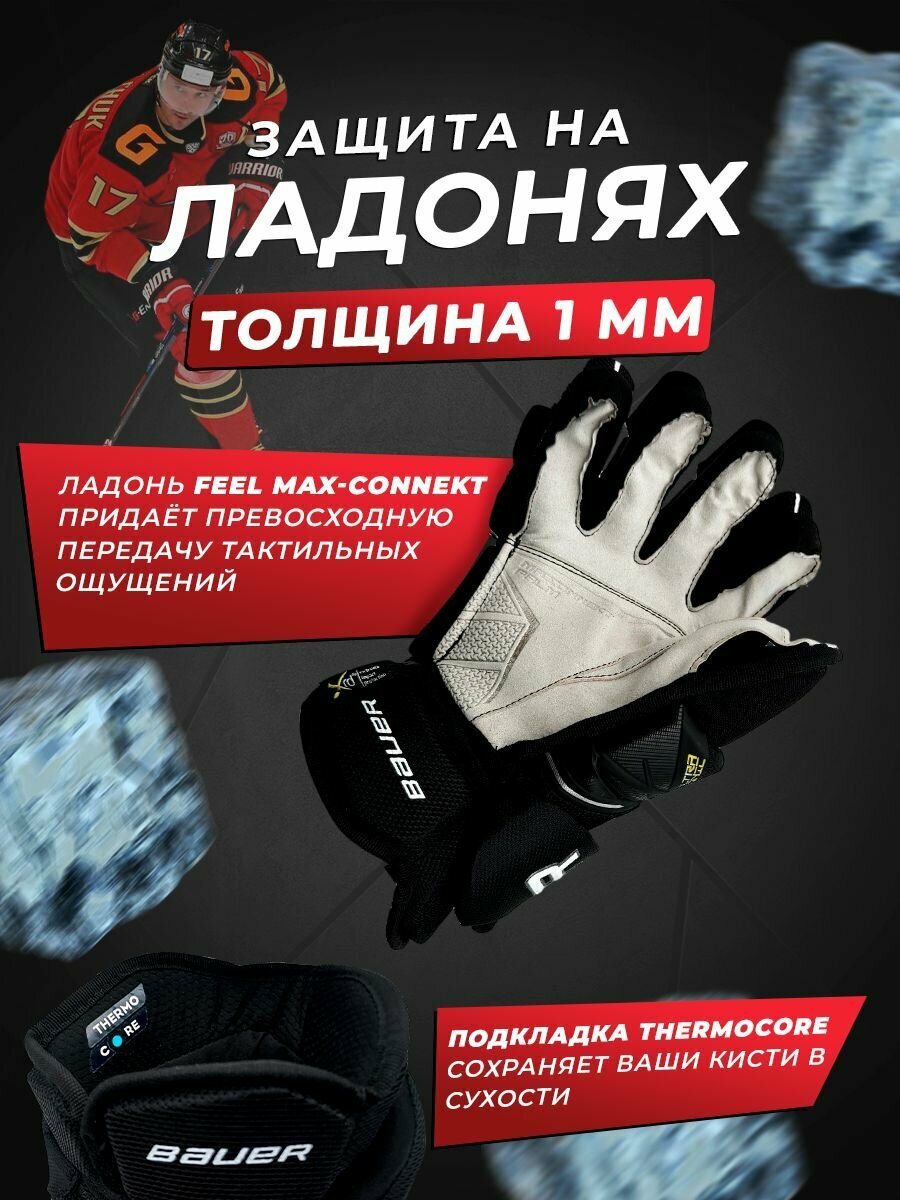 Краги хоккейные перчатки Bauer, размер 13 черно-белые