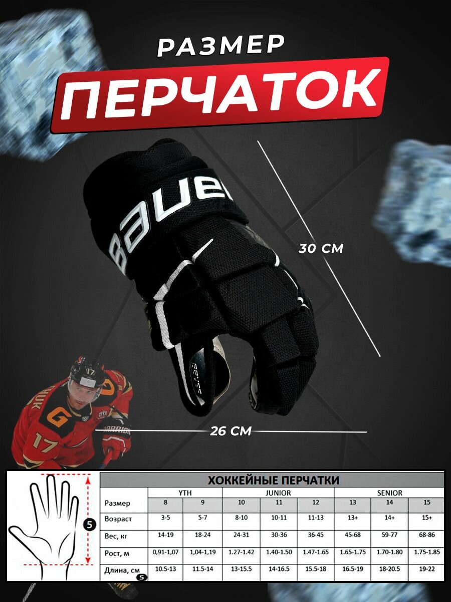 Хоккейные перчатки краги Bauer, размер 12 черно-белые