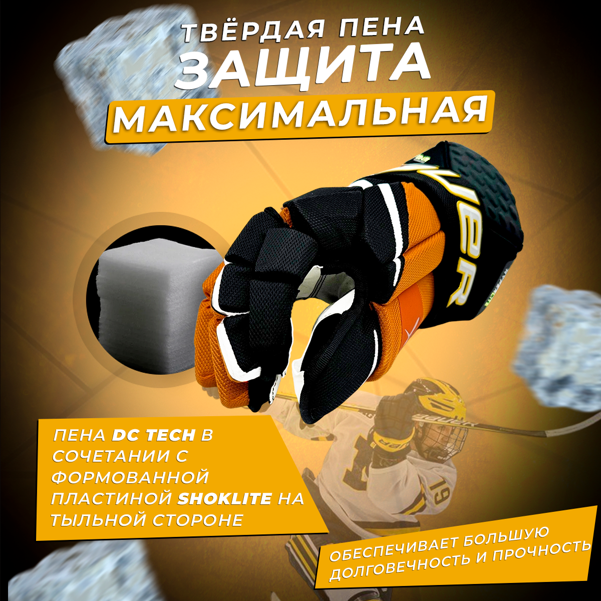 Купить Перчатки хоккейные краги 14 черно-золотые