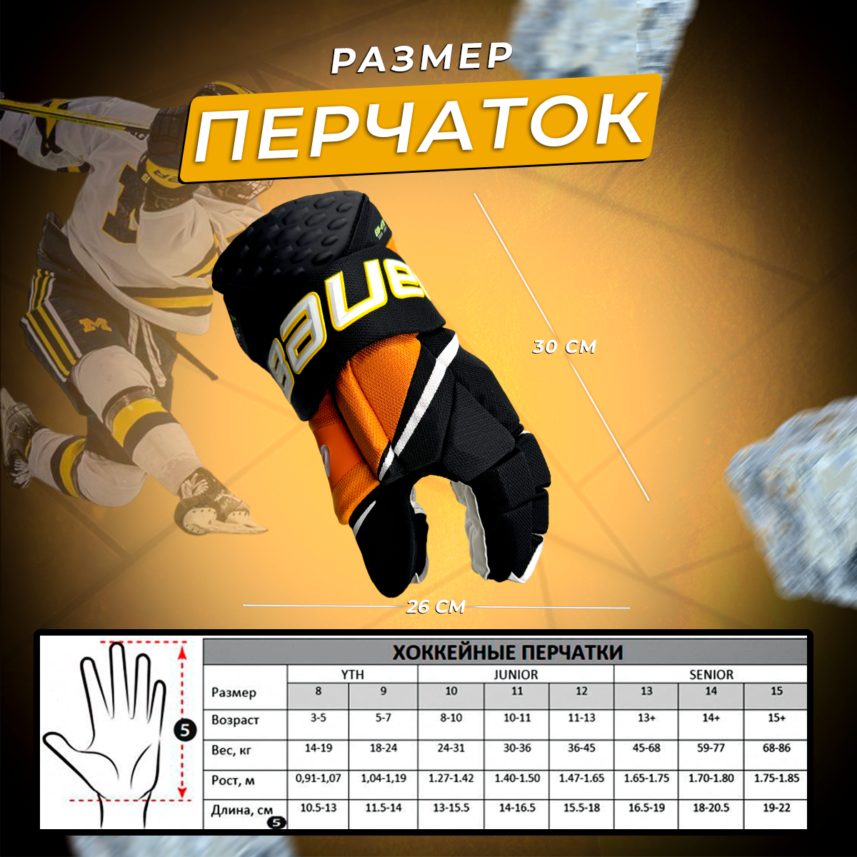 СохранитьПерчатки хоккейные краги 14 черно-золотые интересное: