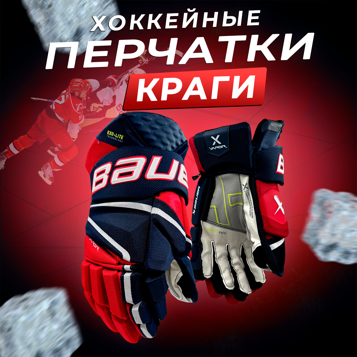 Хоккейные перчатки краги Bauer, размер 10 сине-красные