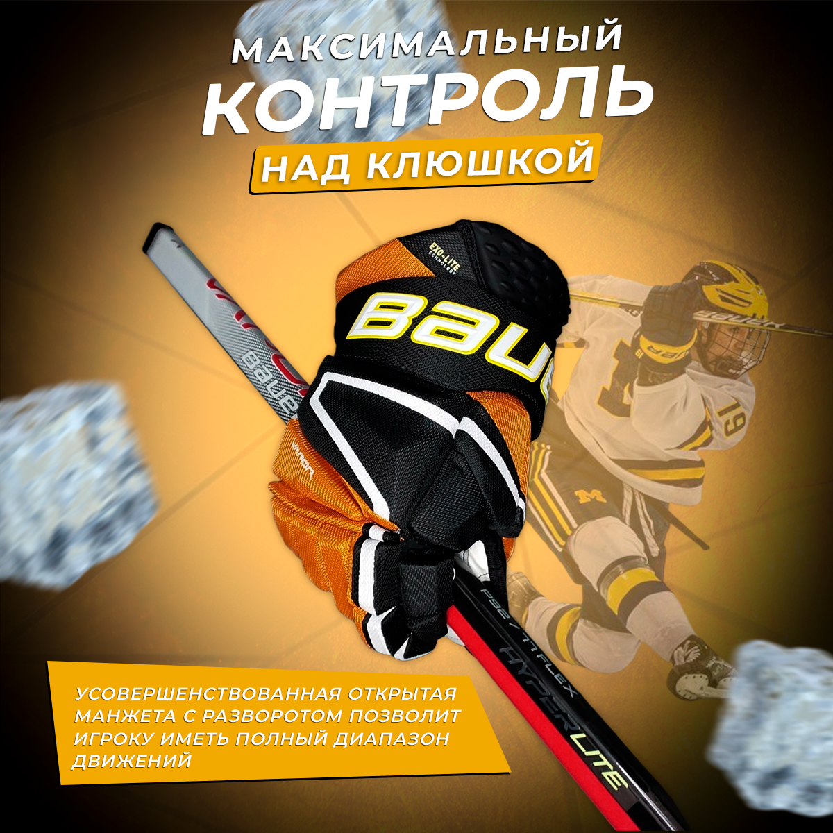 Краги хоккейные перчатки Bauer, размер 13 черно-белые