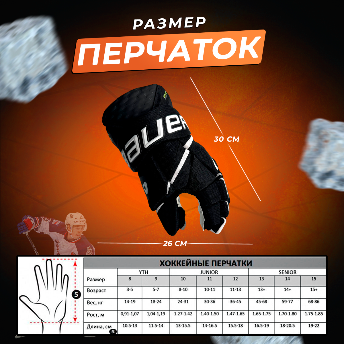 Перчатки хоккейные краги 14 черно-оранжевые