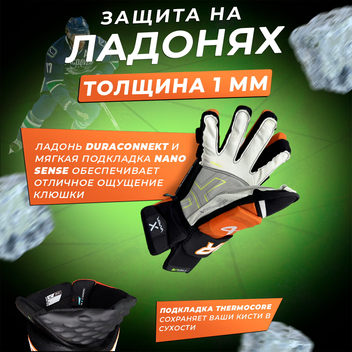 СохранитьПерчатки хоккейные краги 13 черно-оранжевые интересное: