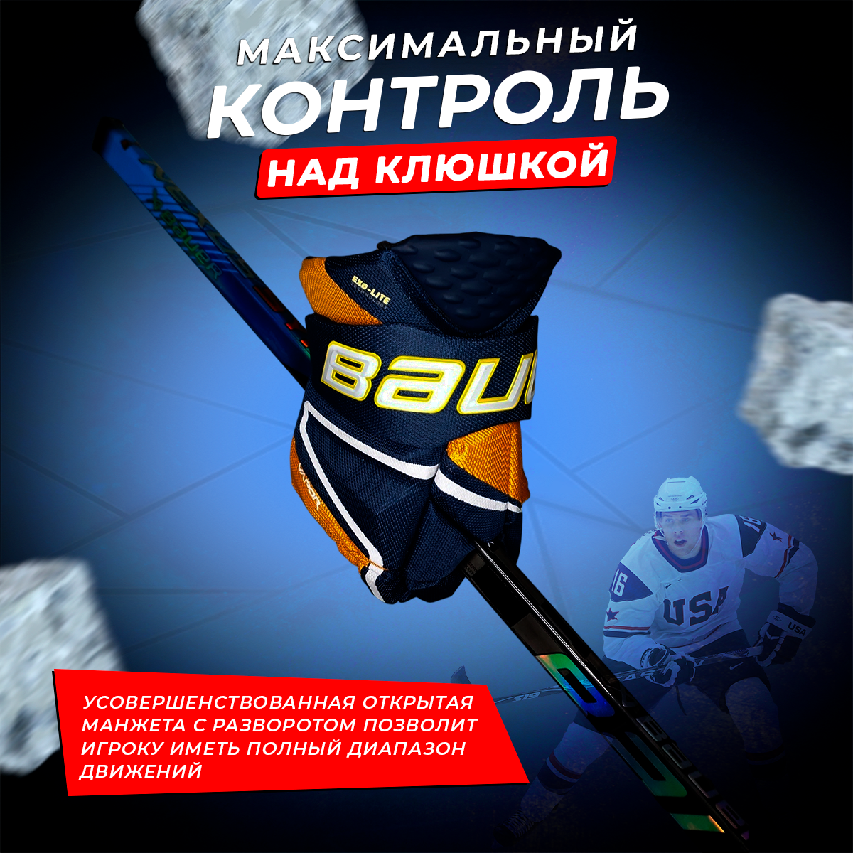 Хоккейные перчатки краги Bauer, размер 10 сине-красные