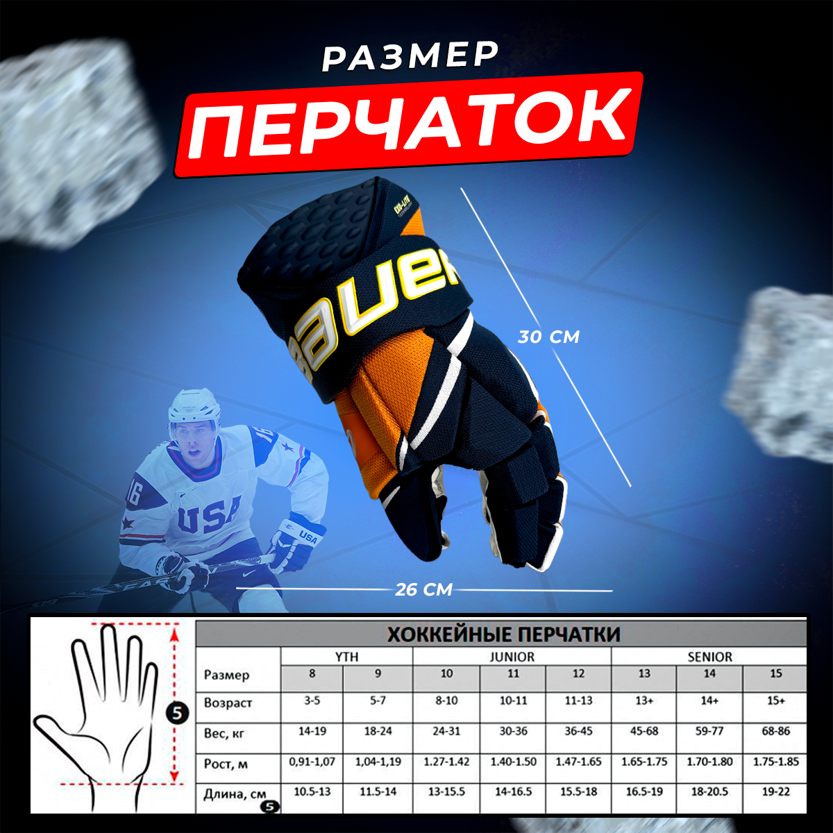 СохранитьПерчатки хоккейные краги 13 сине-золотые интересное: