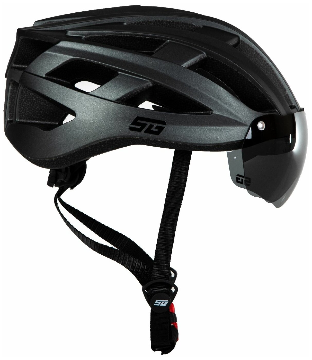 Купить Велошлем STG TS-33 с визором и фонарем, L (58-61 см), серый, в коробке