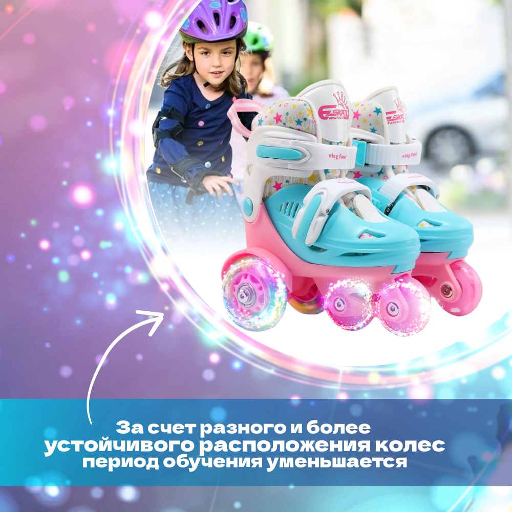Раздвижные роликовые квады для детей, цвет голубой, размер 31-34