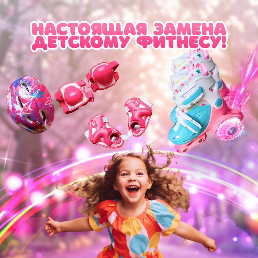 Ролики для детей ДОМ ХИТ дети, розовые, 3 колеса, шлем, комфорт и безопасность, размер 35-38