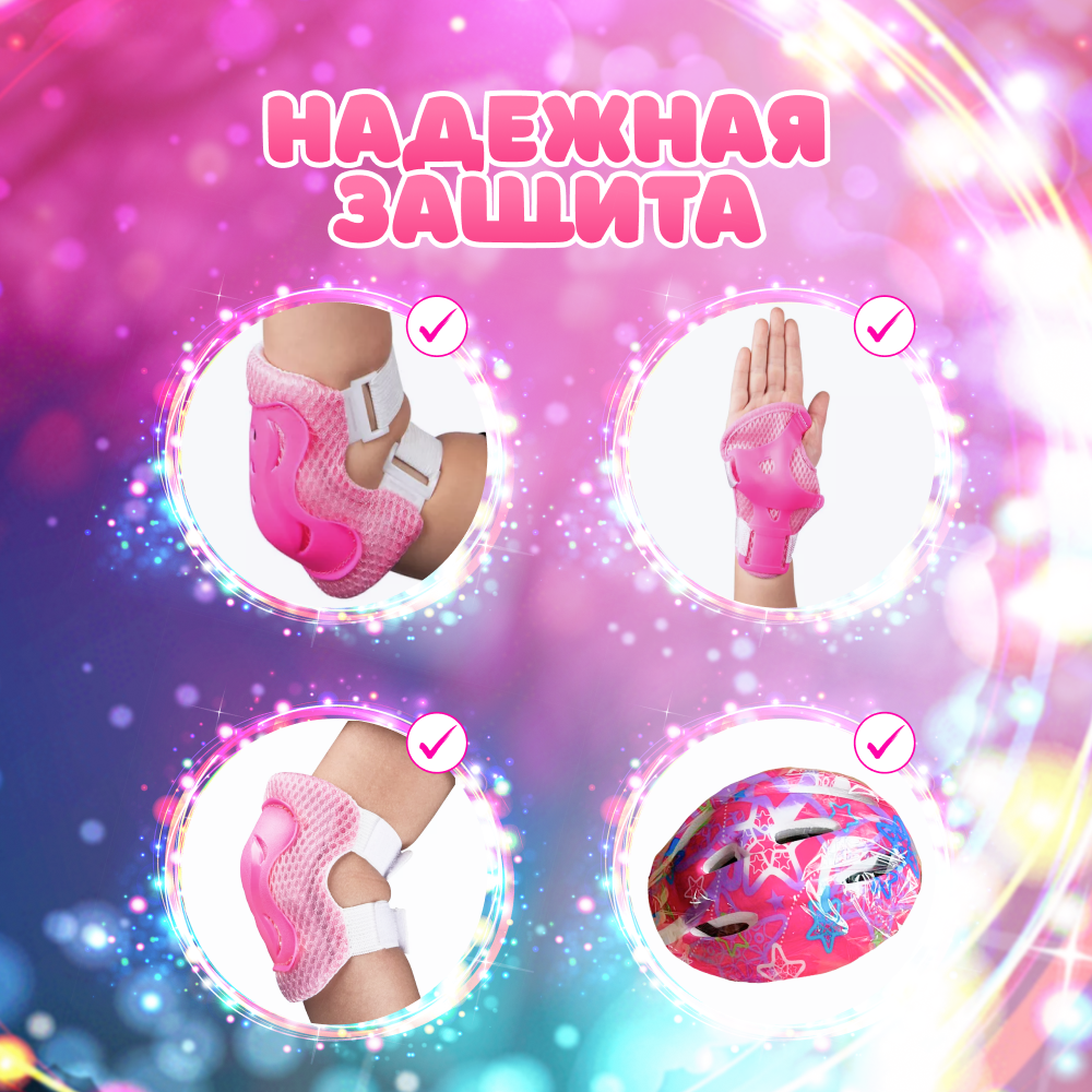 Набор: Ролики детские + комплект защиты, розовые размер 35-38