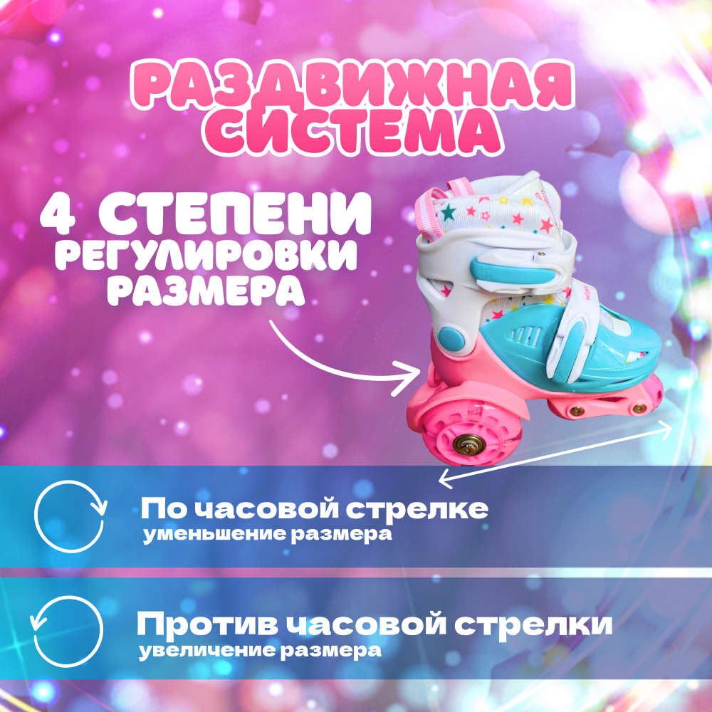 Раздвижные роликовые квады для детей, цвет розовый, размер 31-34