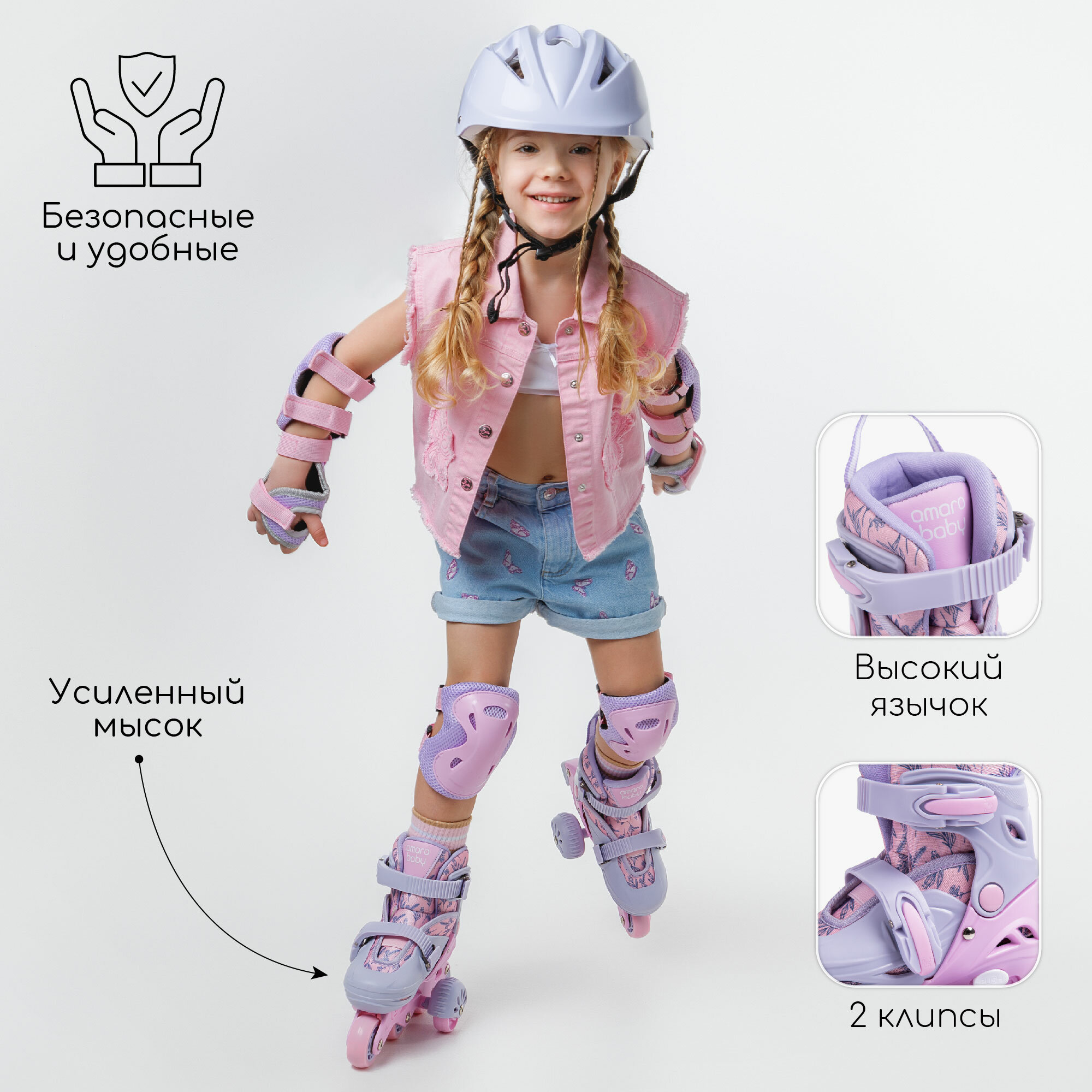 Ролики Amarobaby Glide раздвижные со светящимися колесами и защитой, фиолетовый/розовый, размер 25-28 интересное: