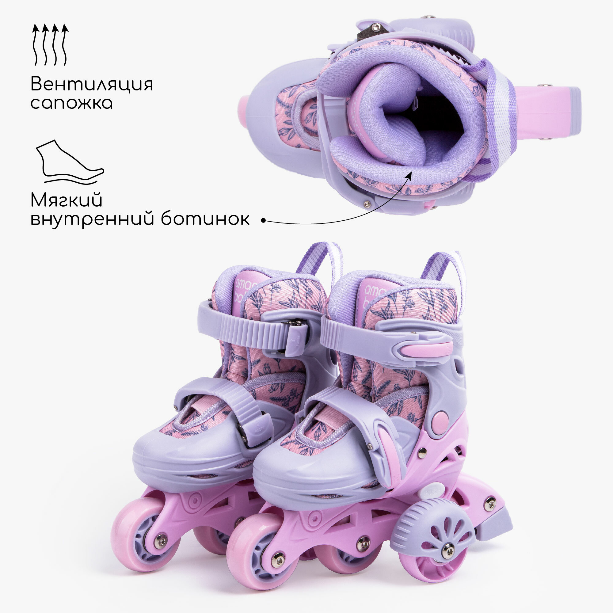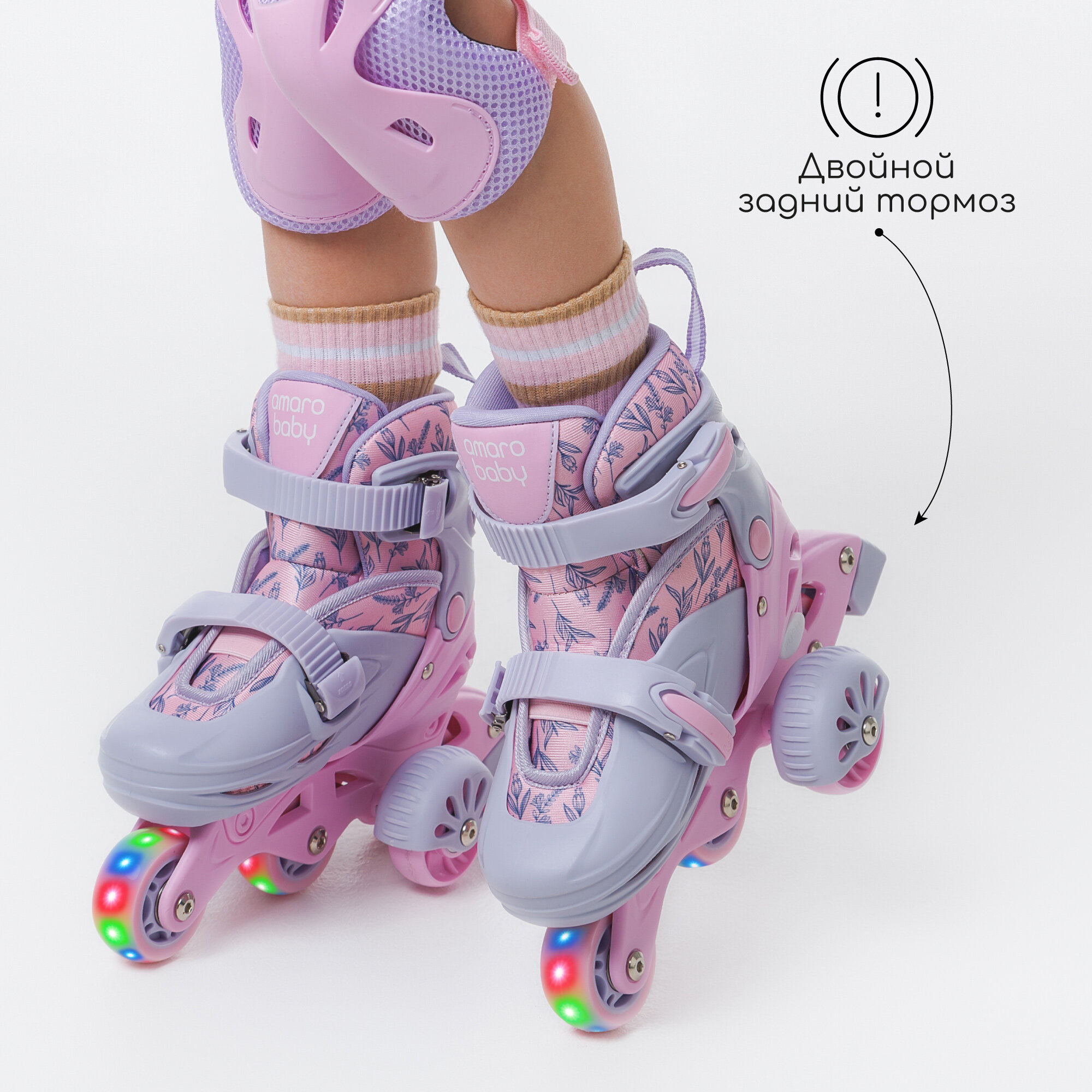 Ролики Amarobaby Glide раздвижные со светящимися колесами и защитой, фиолетовый/розовый, размер 33-36 интересное: