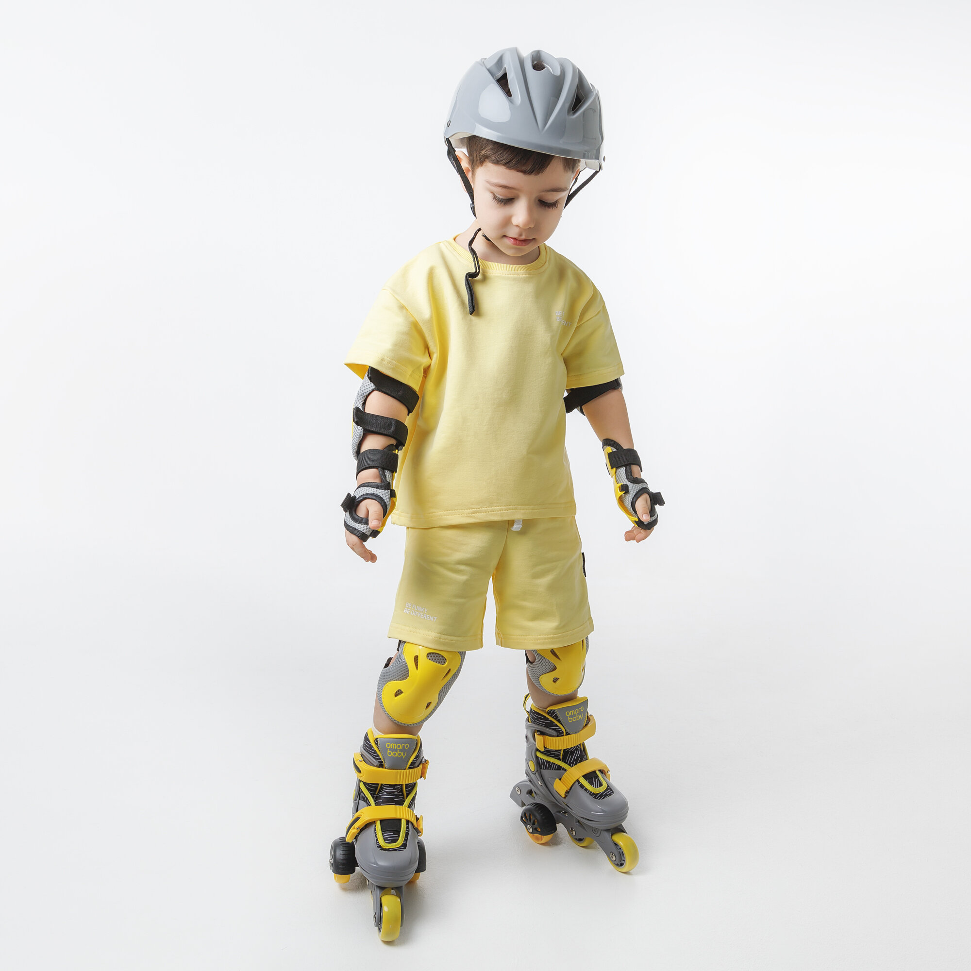 Ролики Amarobaby Glide раздвижные со светящимися колесами и защитой черный серый желтый размер 33-36