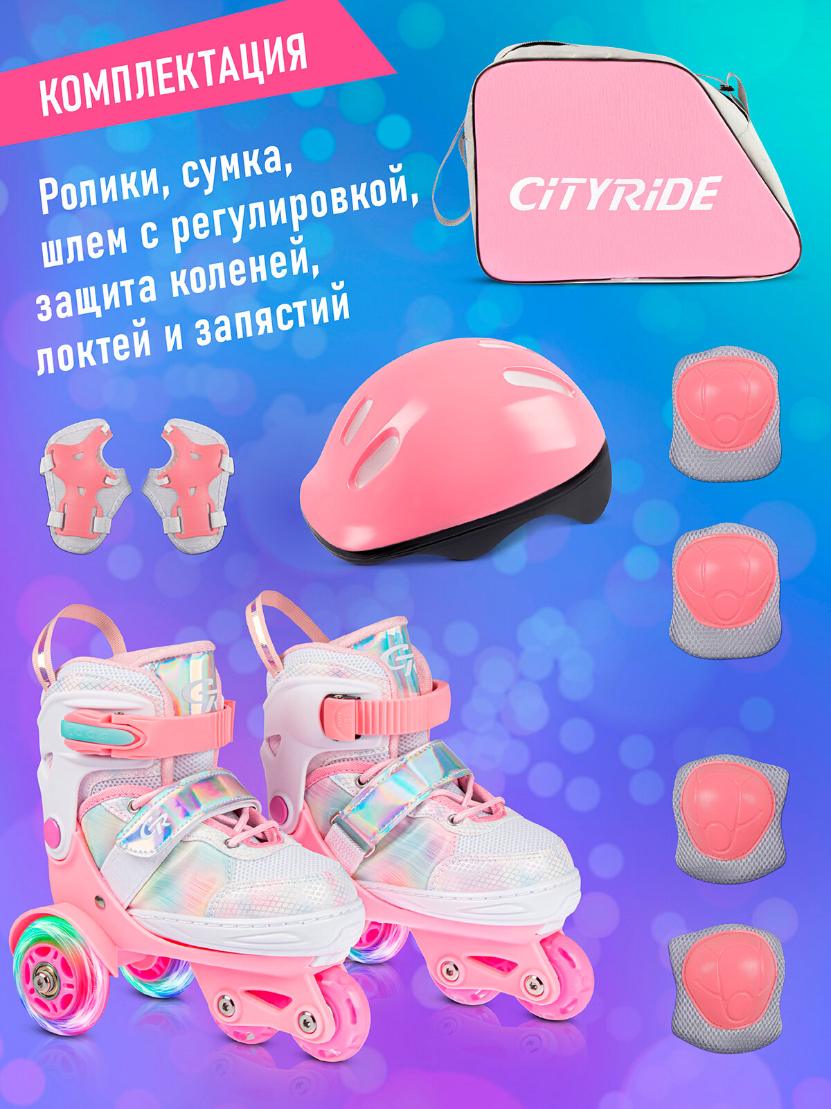 Купить Набор ролики-квады CITYRIDE, шлем, комплект защиты, сумка, колёса PU 50/70, пластиковый мысок, JB9000110/27-30