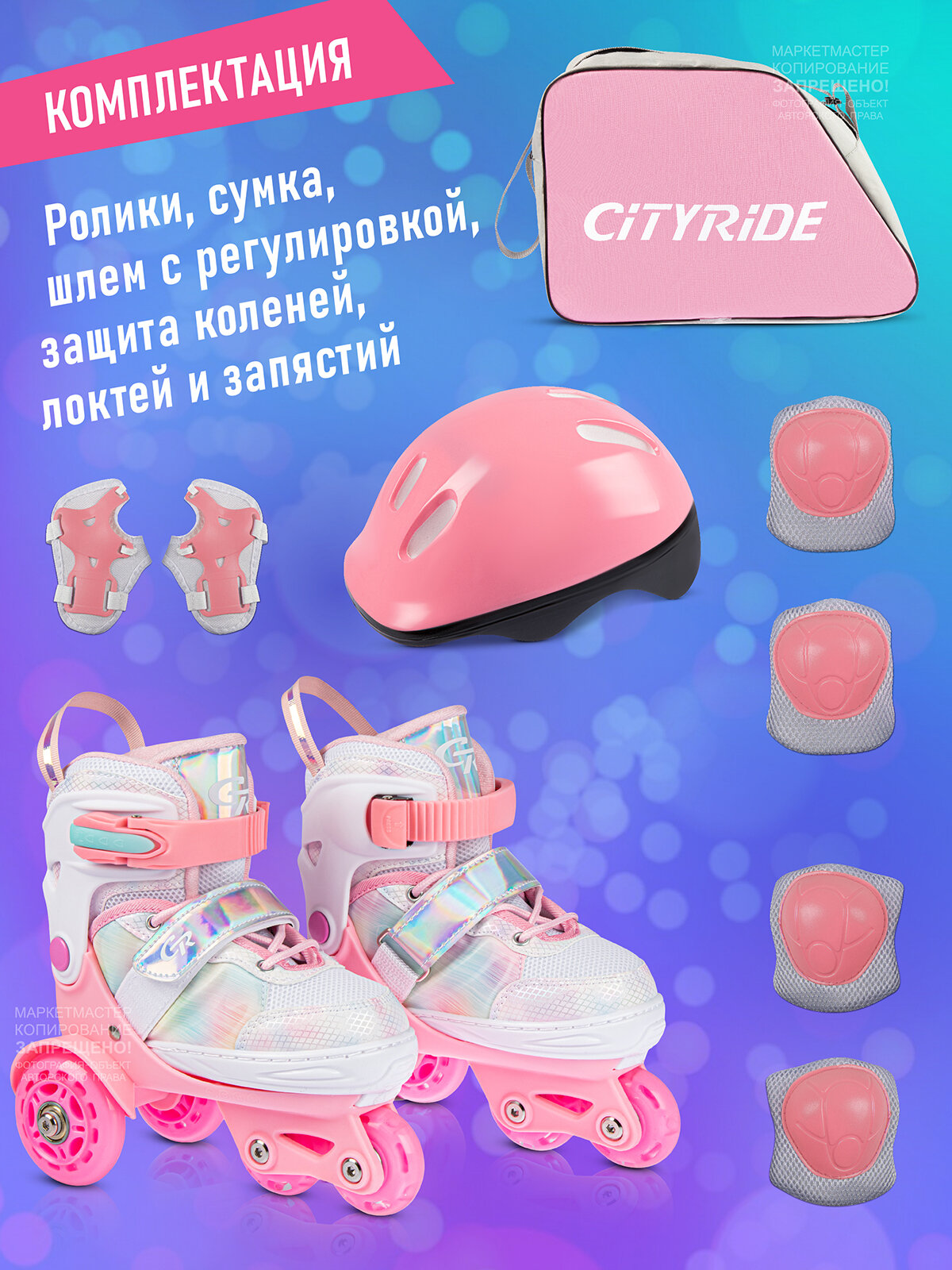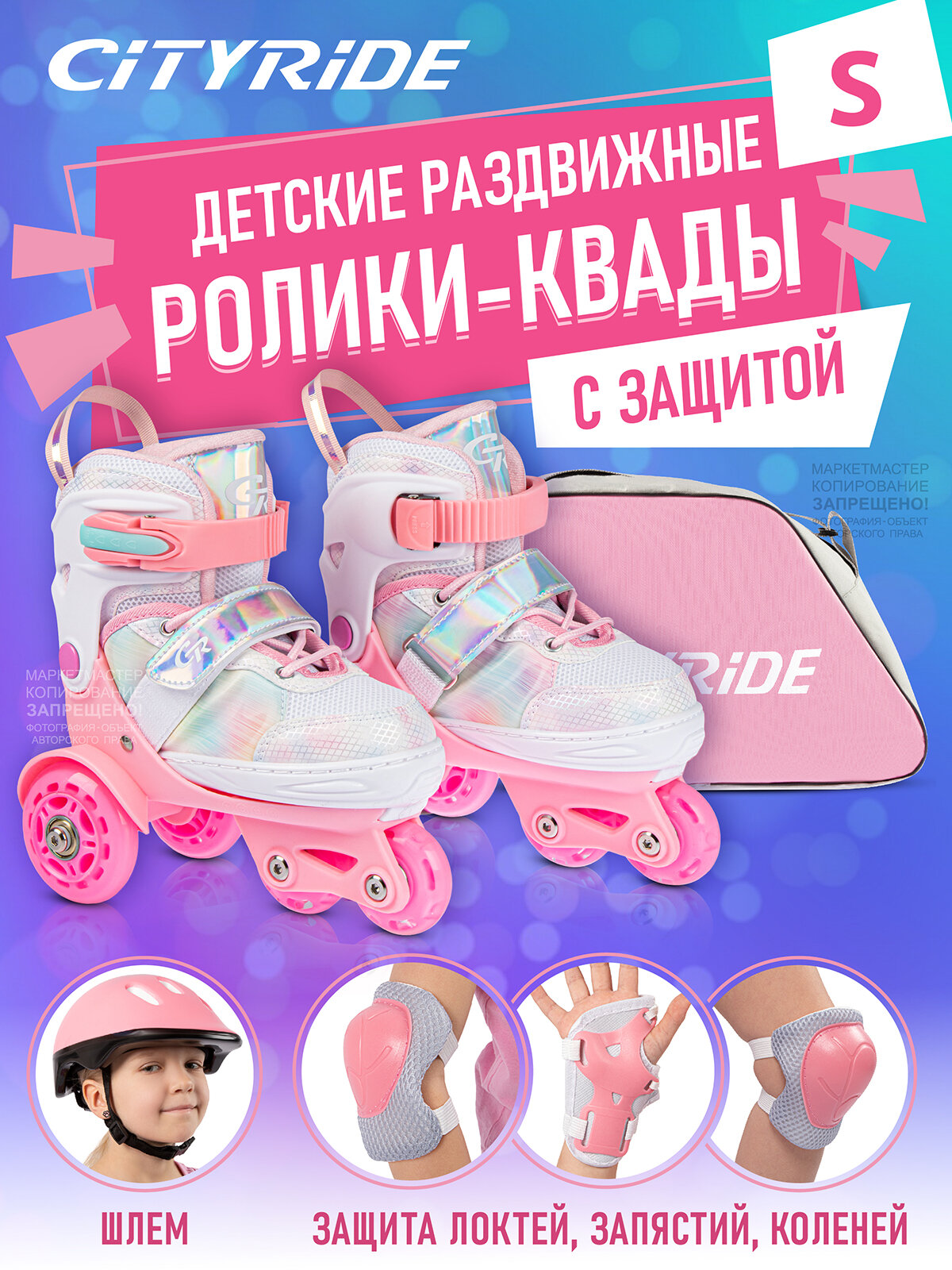 Набор ролики-квады CITYRIDE, шлем, комплект защиты, сумка, колёса PU 50/70, пластиковый мысок, JB9000108/27-30