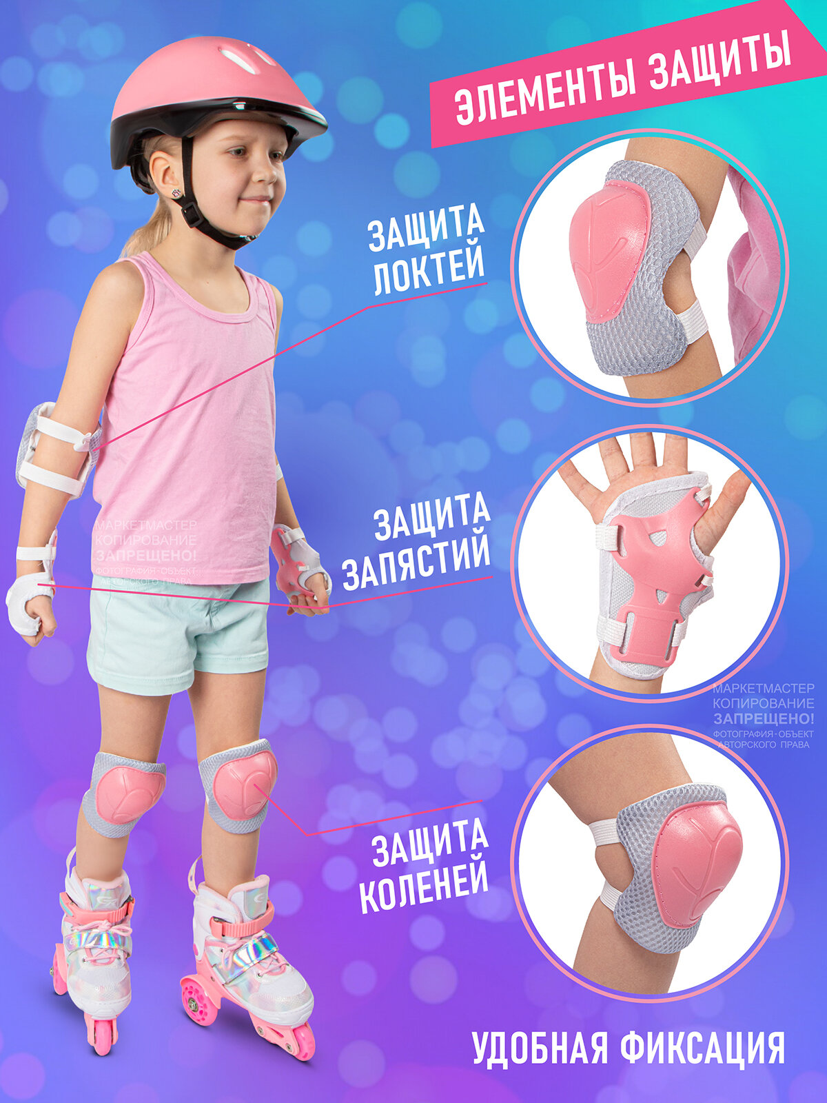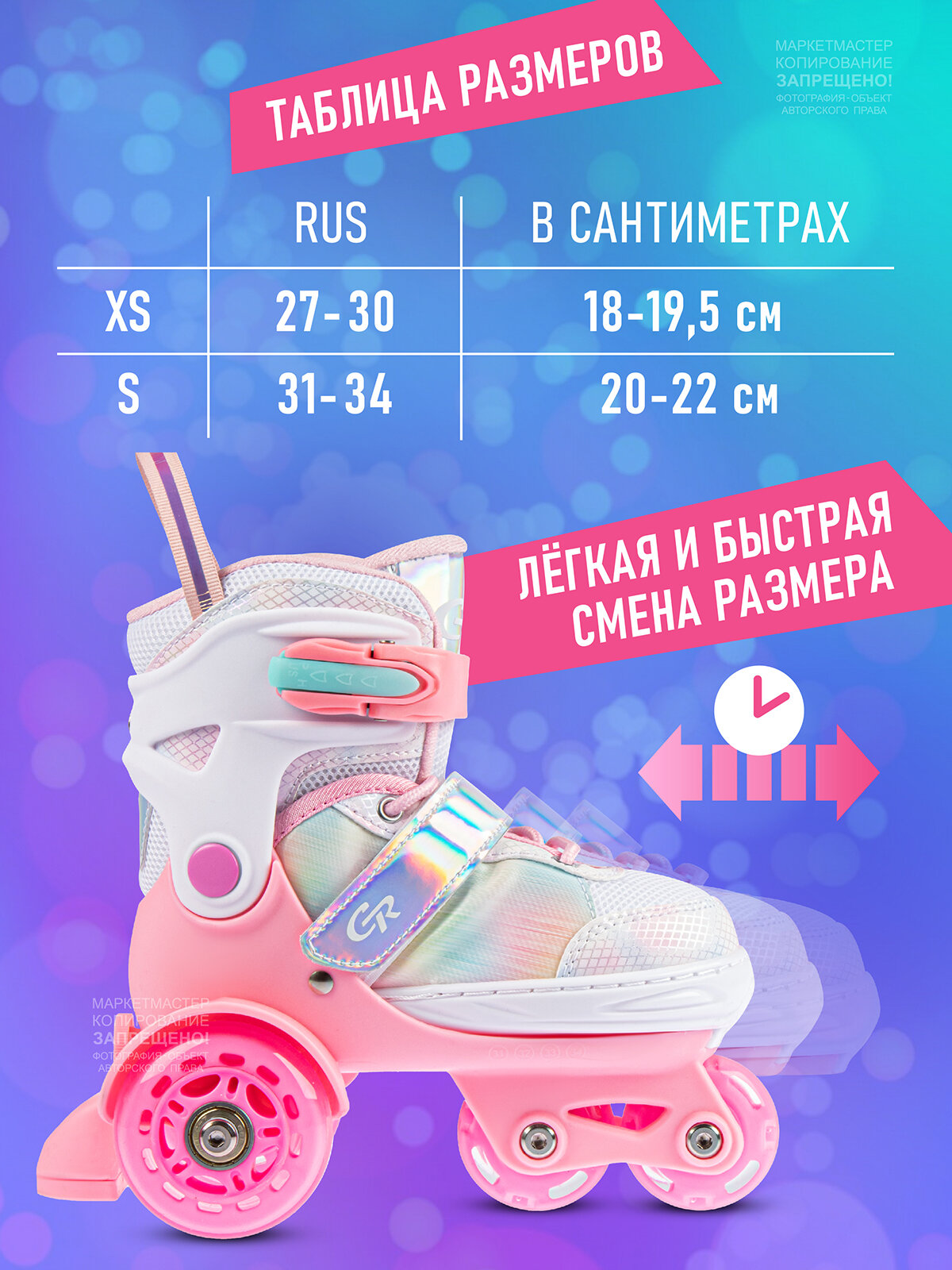 Набор CITYRIDE роликовые коньки-квады, шлем, защита, пластиковый мысок, колёса PU 80/40 мм, JB8800102/XS