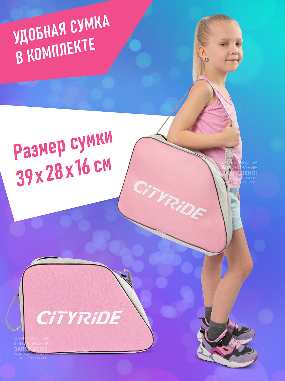 Набор ролики-квады CITYRIDE, шлем, комплект защиты, сумка, колёса PU 50/70, пластиковый мысок, JB9000109/27-30