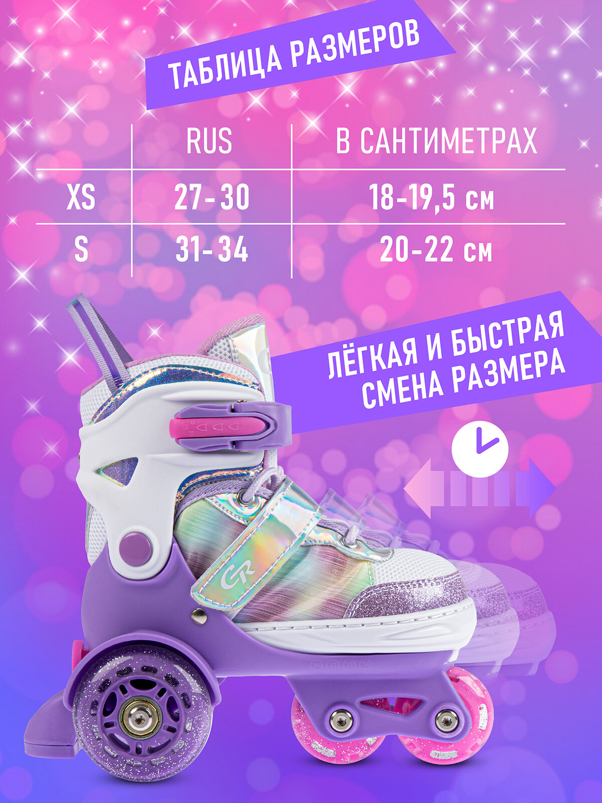 Набор CITYRIDE роликовые коньки-квады, шлем, защита, пластиковый мысок, колёса PU 80/40 мм, JB8800102/XS